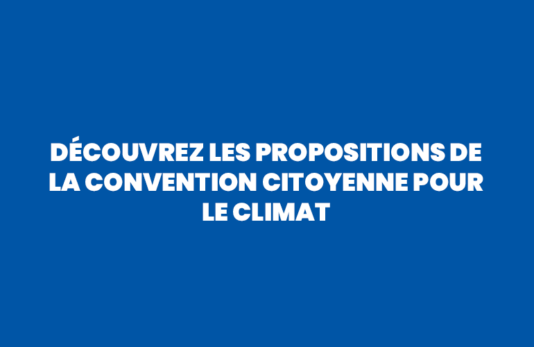 Comme vous le savez, dimanche 21, les membres de la Convention Citoyenne pour le Climat ont remis à la Ministre de la Transition Ecologique et Solidaire, Elisabeth Borne, leurs propositions sur les thématiques SE DEPLACER; SE LOGER; SE NOURRIR; CONSOMMER; PRODUIRE/TRAVAILLER que vous pouvez consulter en détail ici: https://propositions.conventioncitoyennepourleclimat.fr/